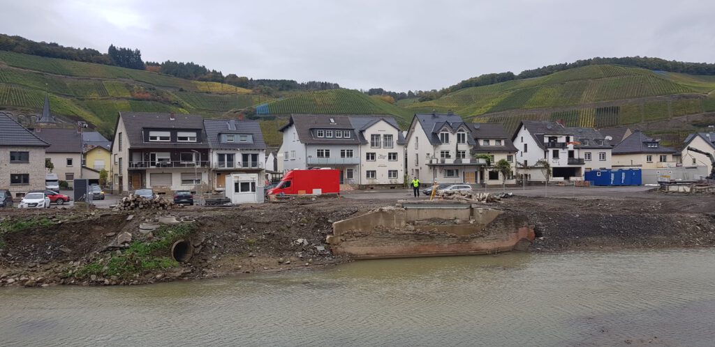 Die Weinbaubrücke fungiert als Hauptverbindung zwischen den beiden Dernauer Ahrseiten. Die Brücke führt zudem zum Sportplatz und auf den Krausberg und somit zu beliebten Freizeiteinrichtungen. Bereits eine frühe Sperrung der Brücke am Abend des 14.07.2021 konnte die Zerstörung nicht verhindern. Eben diese Zerstörung führte auch nach der Flutnacht zu hohen logistischen und versorgungstechnischen Herausforderungen. Neben der Versorgung der Menschen im Ahrweg war auch eine Räumung des Schwemmguts und des Schlamms nur schwer möglich. Nur durch die sehr regulierte Befahrung der in Richtung Rech gelegenen Steinbergsmühlenbrücke konnte die Logistik aufgebaut und aufrechterhalten werden.